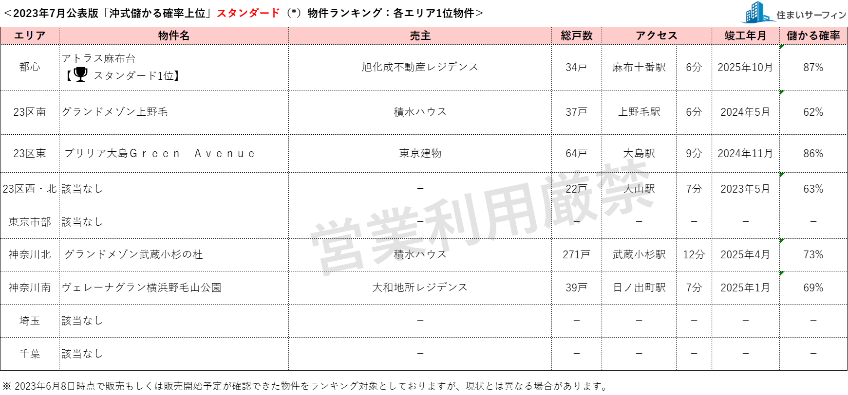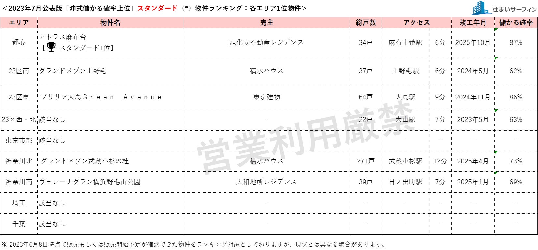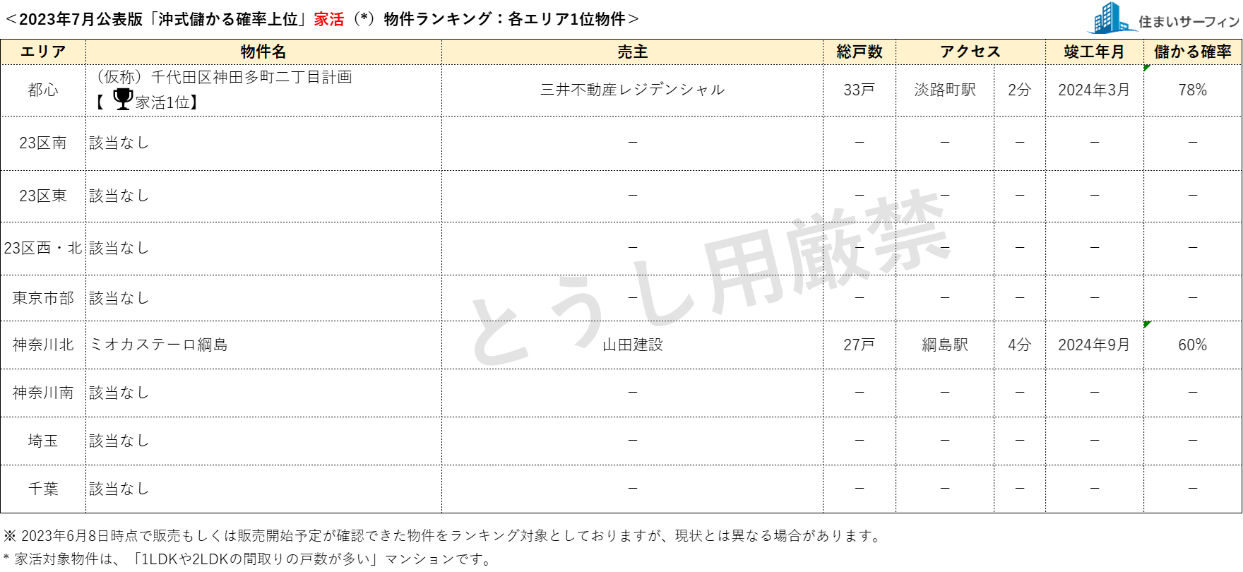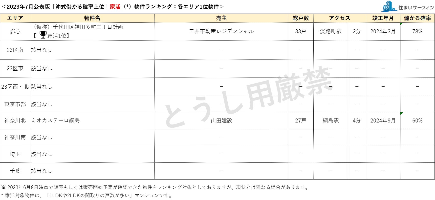 7月公表分は、2023年6月8日時点で販売もしくは販売予定が確認できた物件を対象としています。