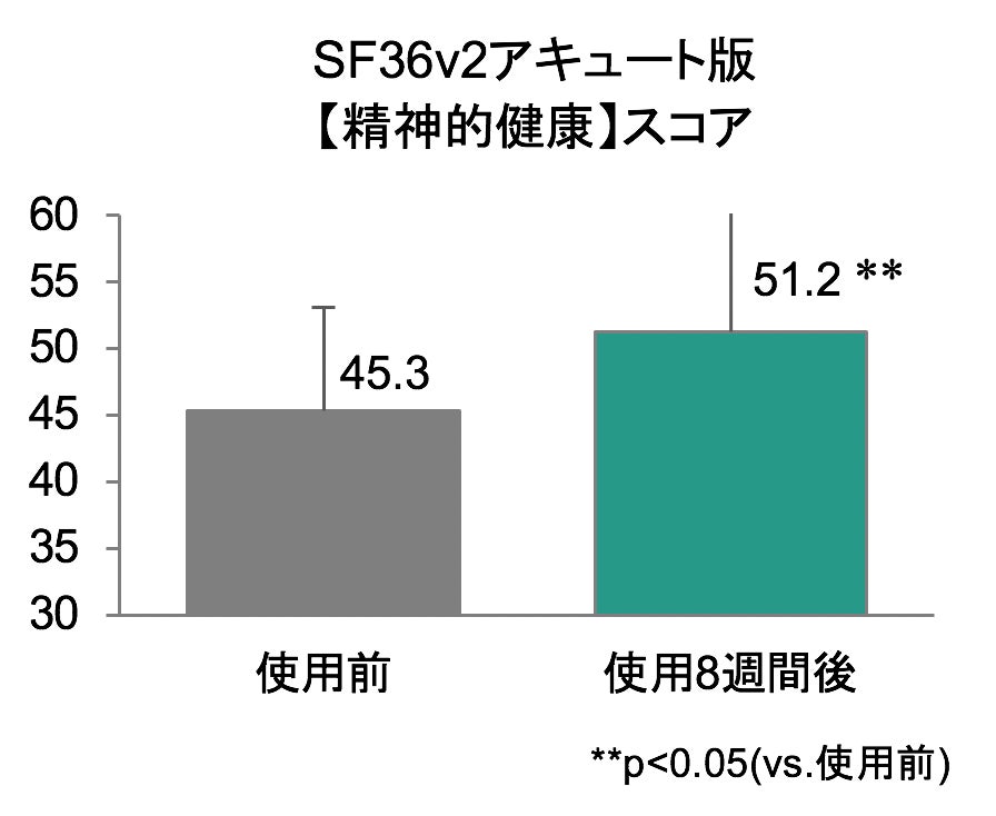 「活力」「心の健康」「精神的健康をあらわすサマリースコア」が改善されました。