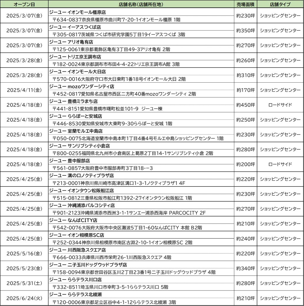 2025年春、ジーユーは新たに20店舗をオープン