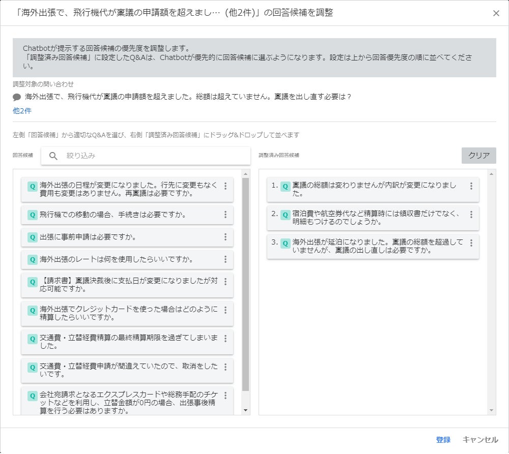 - AI技術より登録質問数を70件→2件に削減、他社製からリプレイス