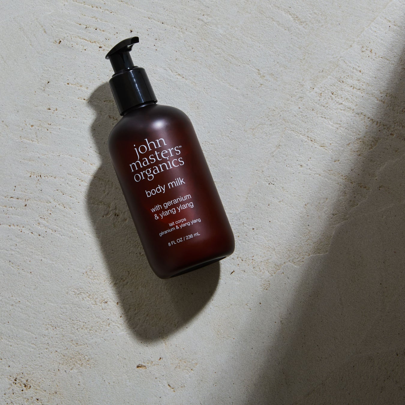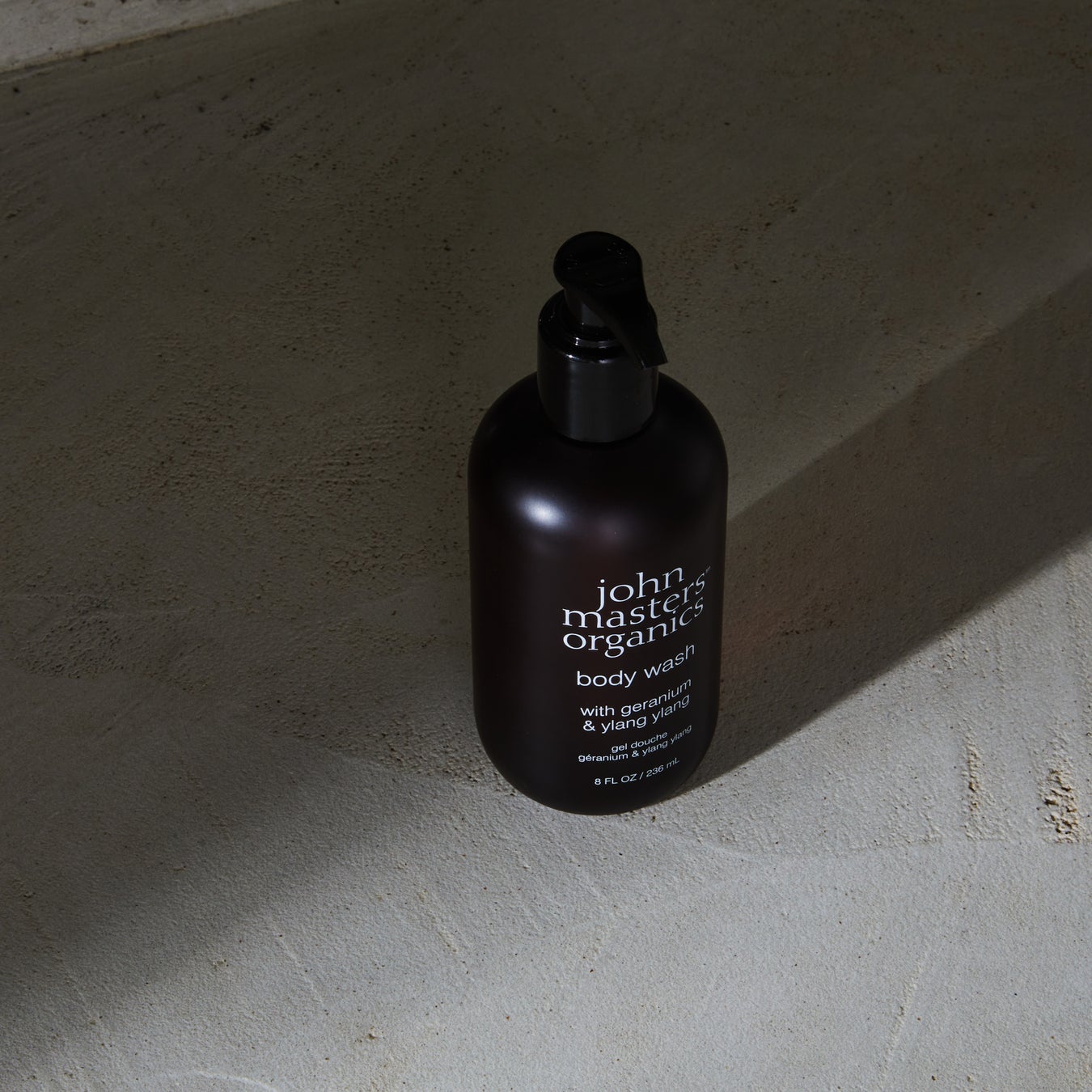 イランイランにゼラニウムなどをブレンドした華やかで優雅な香りのボディウォッシュとボディミルクで、心と身体をケアする至福のひとときを。