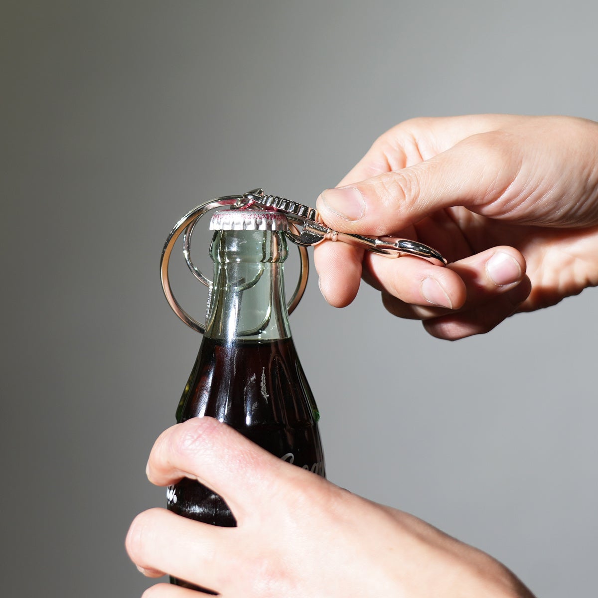 フック本体に、栓抜き機能を内包したキーホルダー。道具としての機能を、ミニマルな形に落とし込むことで見た目はスマート、昭和レトロな空気を纏いながら、「役に立つこと」がデザインになっているキーホルダー。