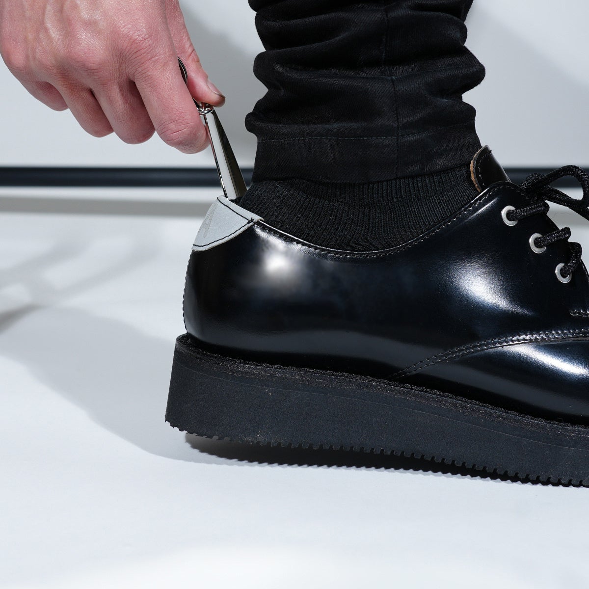 靴を大切にする人の無言の選択。靴を履く瞬間の、ほんの一手間。その丁寧な動作が、踵のスレを防ぎ、靴の寿命を伸ばす。ビジネスにも、カジュアルにも。所作まで含めて身だしなみと考える人へ。