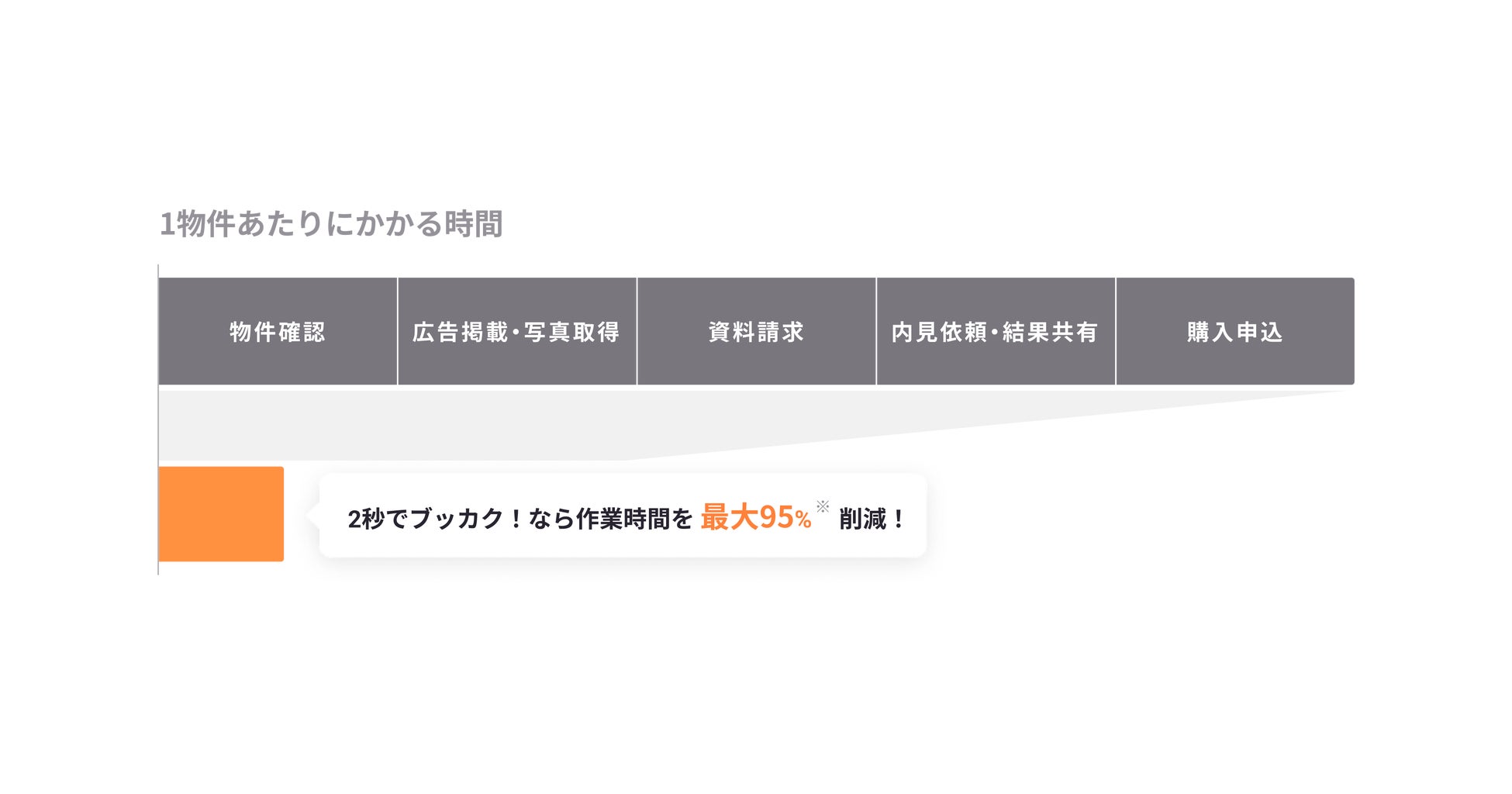 (※2)2秒でブッカク!の機能をフルに活用した際の1物件あたりにかかる時間の最大作業削減率(自社推計)。運用方法により削減率は変動します。