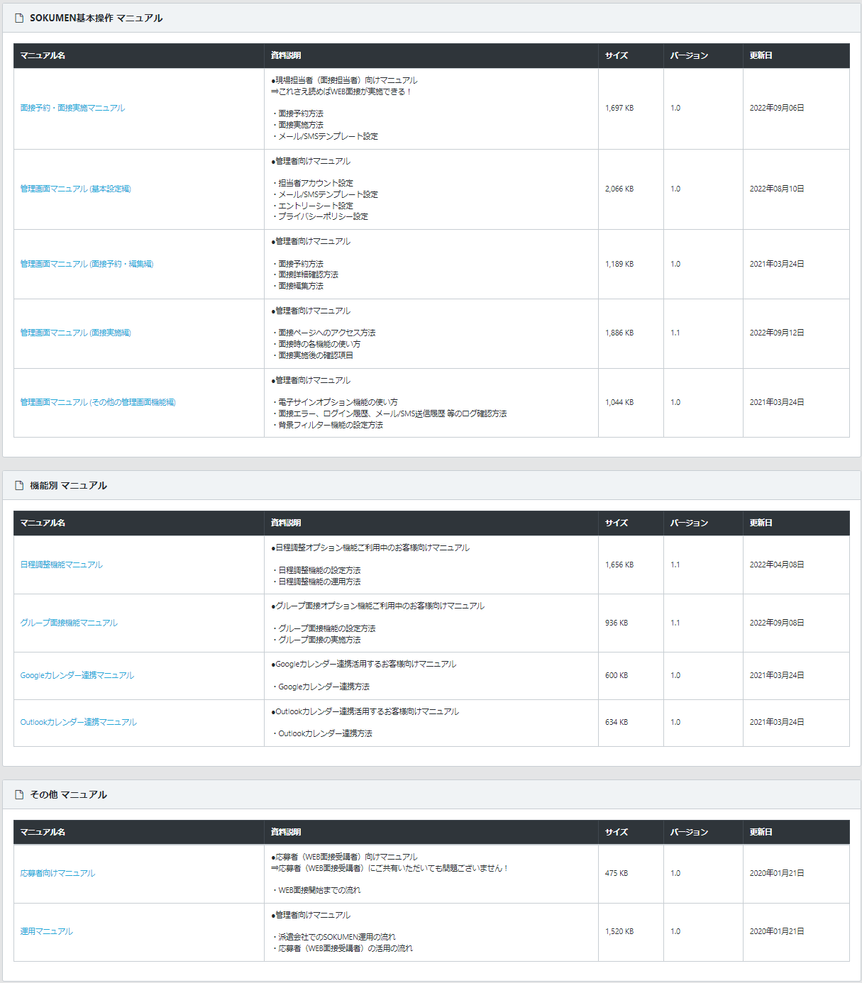 人材派遣・人材紹介・請負会社をDXするWeb面接ツールSOKUMEN、マニュアルダウンロードページのUIを改善しました。