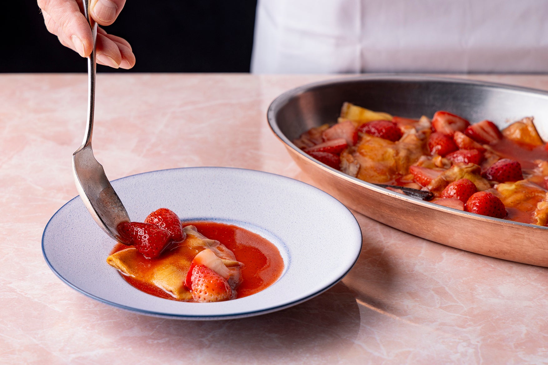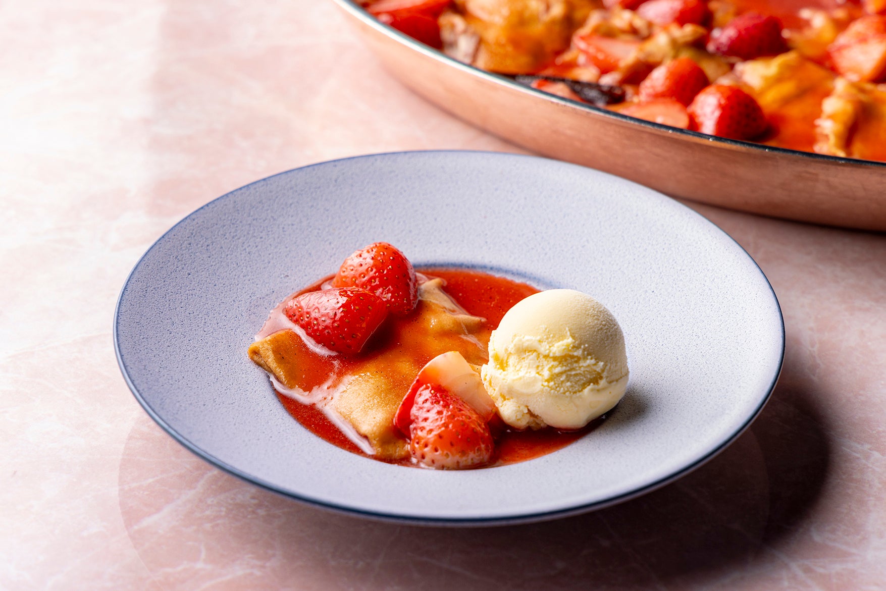 いちごと桜のクレープシュゼット バニラアイスクリーム添え