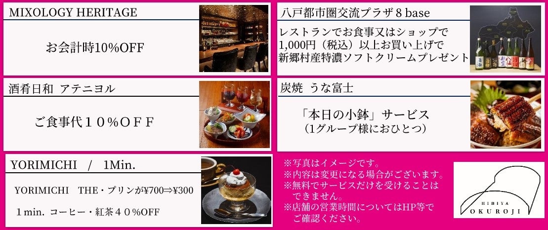 ご観劇当日のチケットを日比谷OKUROJIタイアップ店舗にご提示で、各種割引やデザートサービスなどお得なサービスが受けられます。詳細は別紙にてご確認ください。