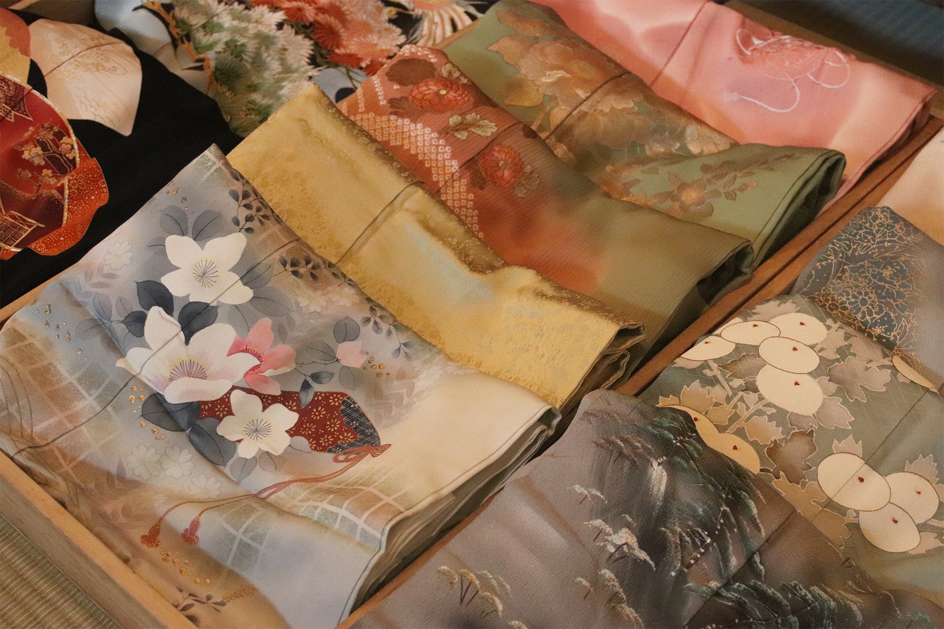 本受注会では、YAMATO Lab.がセレクトしたきものに加え、お客様ご自身のきものをお持ち込みいただき、アイテムの一部として取り入れることも可能です。