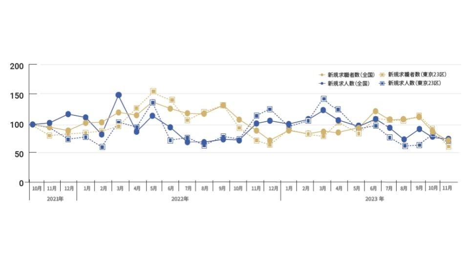 ポイント1:保育士の新規求職者数と新規求人数のトレンド