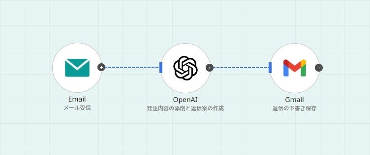 お客様から問い合わせメールが届いた際に、GPTが内容を解析し、返信メールを作成・下書き保存をする作業を自動化。