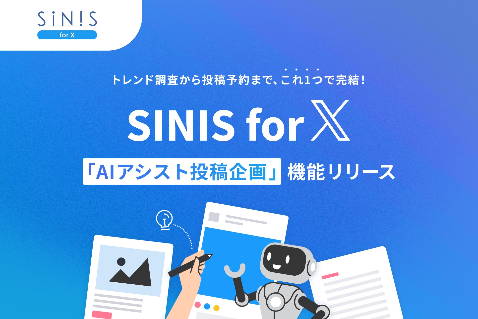 企業向けSNSマーケティング支援を中心としたビジネス展開をするテテマーチ株式会社(本社:目黒区、代表取締役:上田 大介)が運営するX分析・運用支援ツール「SINIS for X(サイニスフォーエックス)」は、X(旧Twitter)において、新機能「AIアシスト投稿企画」を2026年4月20日にリリースします。