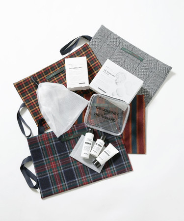 朝晩約5日分のBULK HOMMEの洗顔料(THE FACE WASH) 、化粧水(THE TONER) 、乳液(THE LOTION)に泡立てネットを付属し、イタリアのファクトリーブランド“BERWICH(ベルウィッチ)”の非売品クラッチバッグがついてくるスペシャルな逸品となっている。持ち歩きに便利なコンパクトなサイズ感は旅行や出張、ジムだけでなく、ギフトにもオススメのアイテムとなっている。