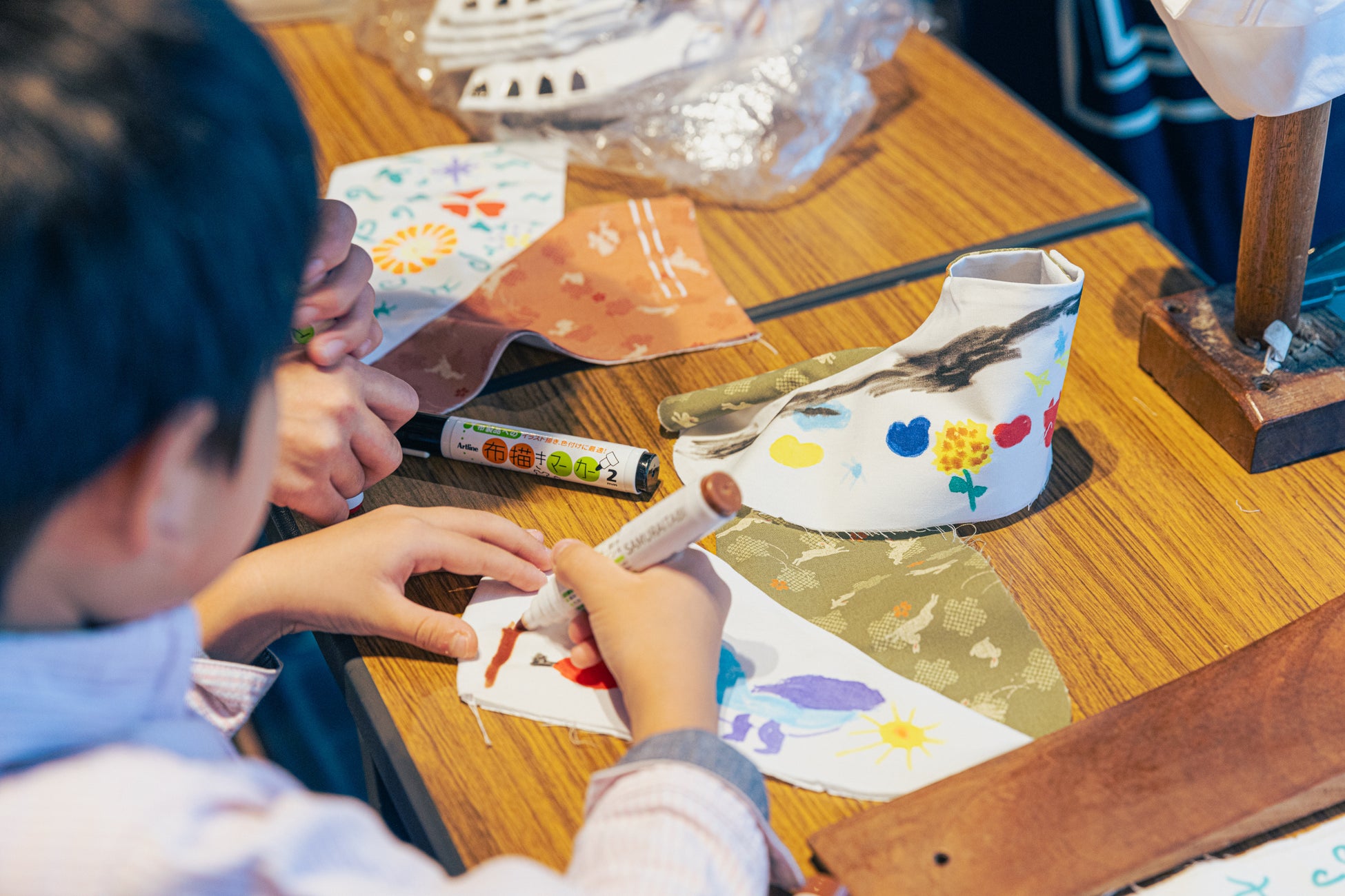 本イベントでは、行田足袋の仕上げ工程の体験や、完成前の足袋にオリジナルデザインを施し、世界に一つだけのオリジナル足袋の制作ワークショップが実施されました。イベント当日は、カラフルな柄足袋に惹かれ、多くの方が足をとめて行田足袋に関心を寄せてくださいました。
