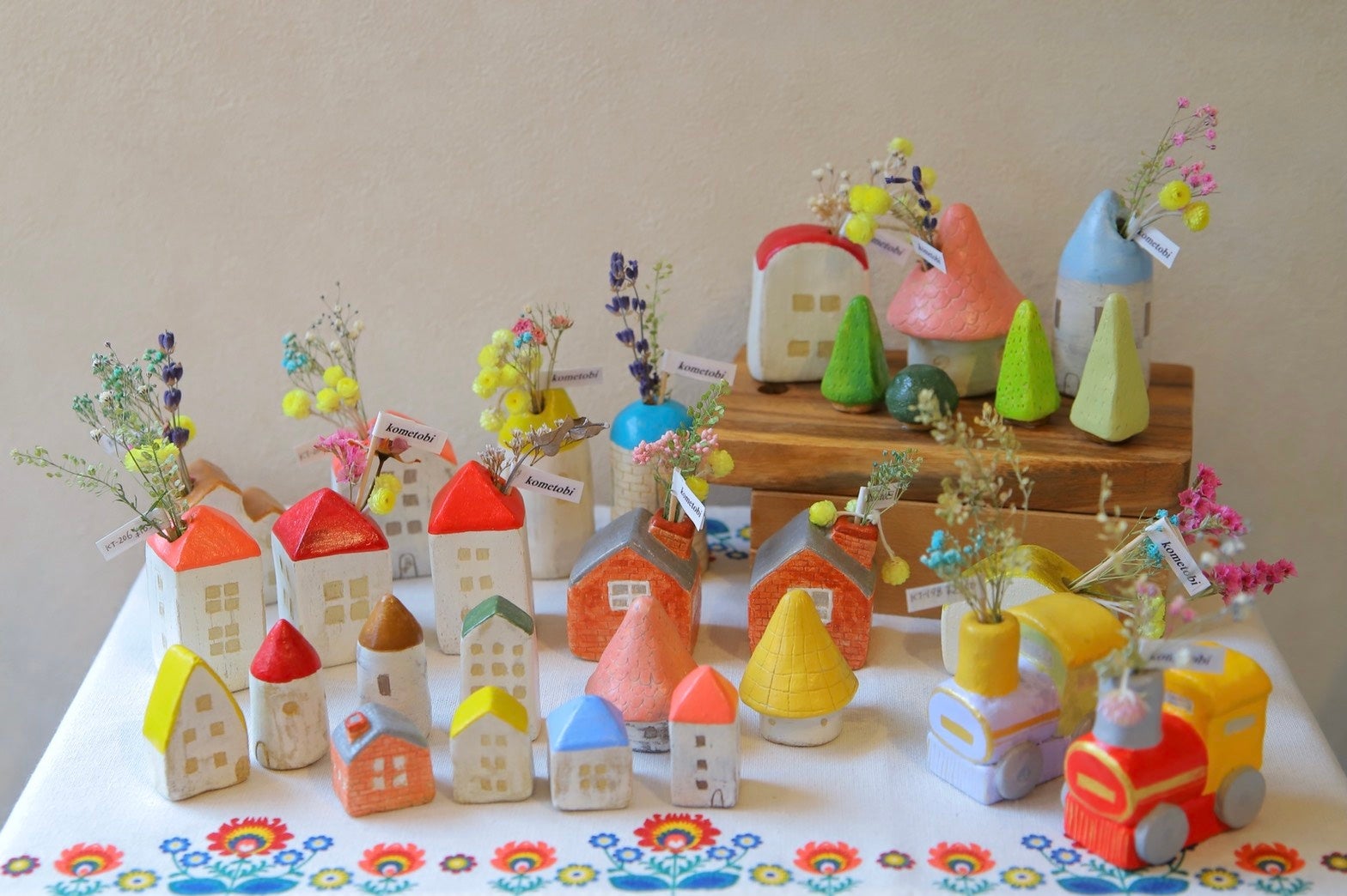 オーブン陶土で仕上げる、サンタクロースやツリーなどのオブジェや、ブローチ。おとぎの国のような世界観に癒されます。