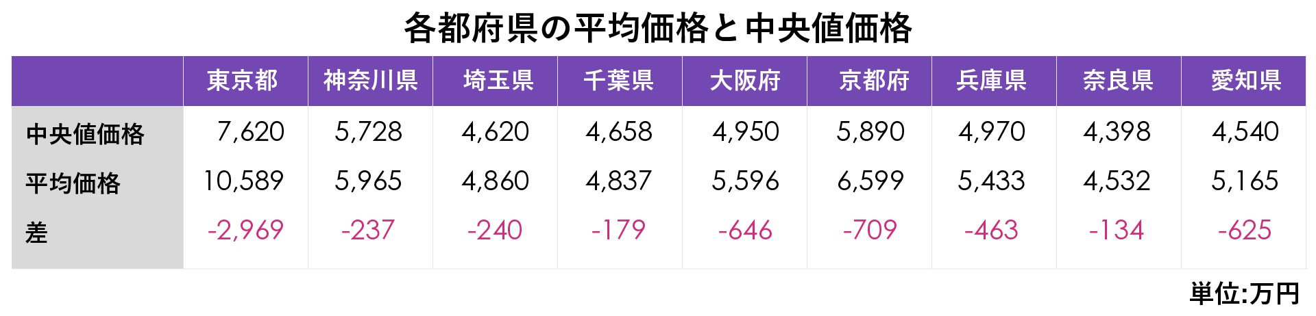 ■東京都は中央値価格が平均価格より約3,000万円も低い