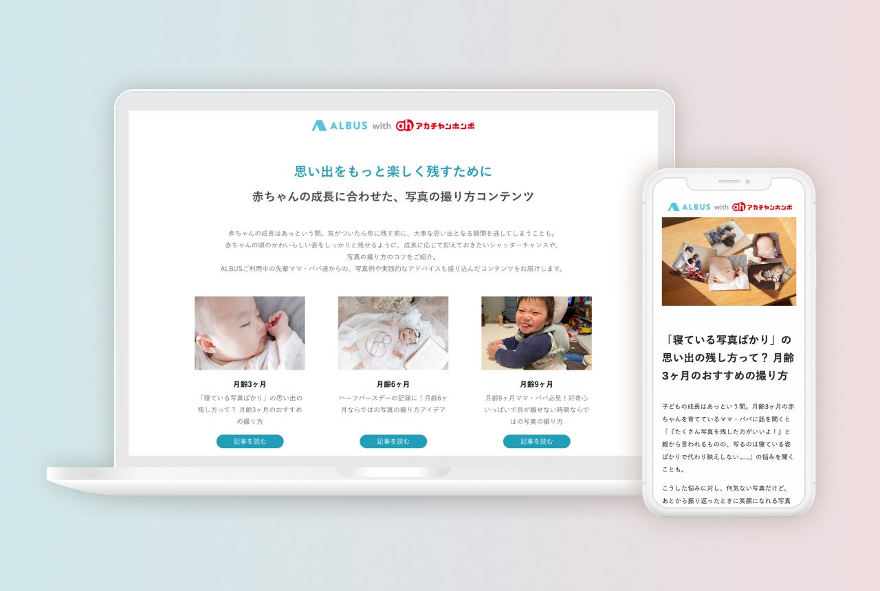 創業90周年を迎えた株式会社赤ちゃん本舗(本社:大阪市中央区)は、写真プリントサービス「ALBUS(アルバス)」(運営:ROLLCAKE株式会社、本社:東京都目黒区)と一緒に、赤ちゃんとの大切な思い出づくりを支援する「ALBUS with akachanhonpo」を展開いたします。