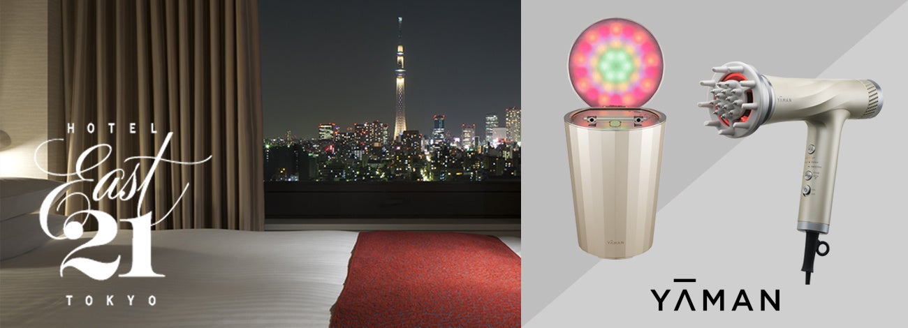 ヤーマン株式会社(代表取締役社長:山﨑貴三代、所在地:東京都江東区)は、東京の東エリアに位置するラグジュアリーホテル「ホテル イースト21東京」(総支配人:髙麗 積克、所在地:東京都江東区東陽)との取り組みを開始し、理想の美を先端テクノロジーと常識を超えるアイデアで叶える当社の基幹ブランド「YA-MAN TOKYO JAPAN」より、エイジングケアスチーマー『フォトシャイン』と、美顔器機能を搭載し最高峰の美髪テクノロジーを駆使したドライヤー『リフトドライヤー』の2製品を2022年5月1日(日)よりスイートルームなど14室の客室に設置いたします。