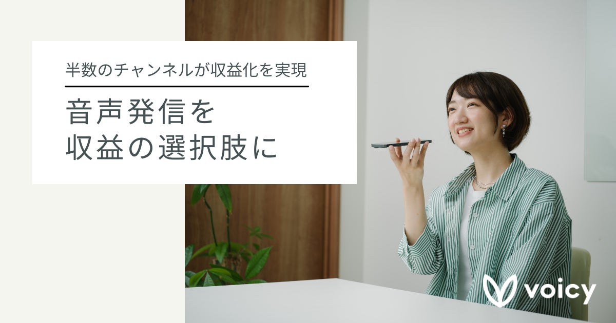 株式会社Voicyが運営する音声プラットフォームVoicyでは、放送中のチャンネル数が1,600を突破しました。そして、それらを対象としたチャンネルの約半数が収益化を実現しました。Voicyは、声が収益を得るひとつの選択肢となる土壌を整え、可能性を広げていきます。