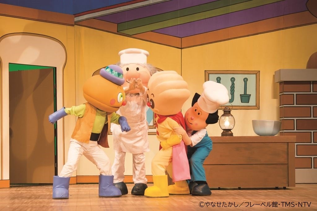 楽しい⾳楽に合わせて、アンパンマンやなかまたちが歌っておどるミュージカル形式のステージショー。