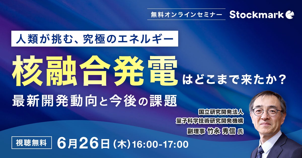 【6月26日(木) 無料セミナー】『核融合発電はどこまで来たか? - 最新開発動向と今後の課題』を開催(ストックマーク主催)