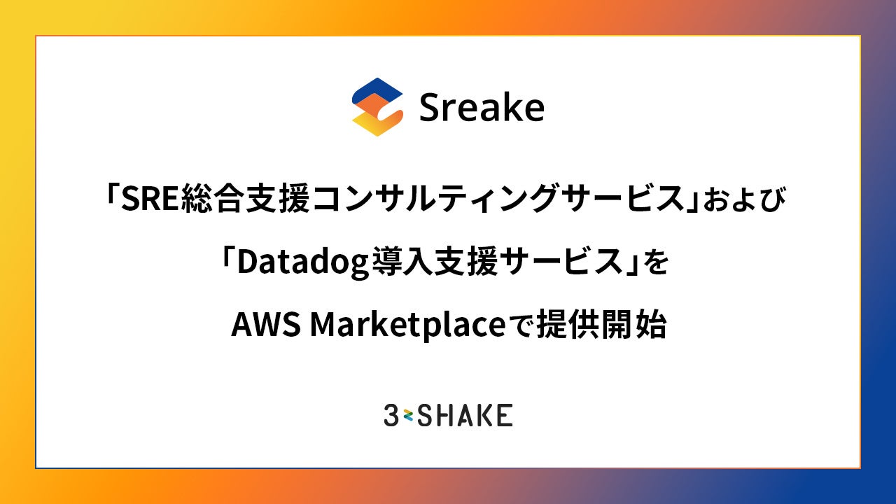 株式会社スリーシェイク(本社:東京都新宿区、代表取締役社長:吉田 拓真、以下スリーシェイク)が提供する「SRE総合支援コンサルティングサービス」および「Datadog導入支援サービス」を AWS Marketplace で提供開始したことをお知らせします。