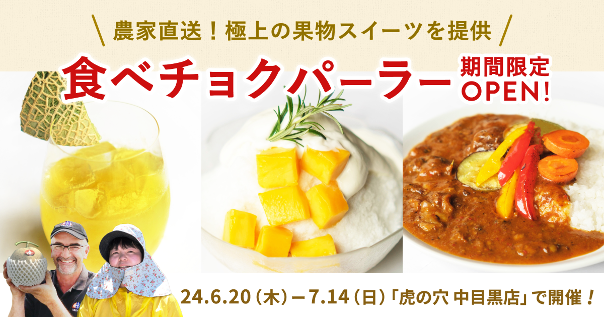 認知度・利用率など9つのNo.1(※1)を持つ日本最大の産直通販サイト「食べチョク」を運営する株式会社ビビッドガーデン(本社:東京都港区、代表取締役社長:秋元里奈)は、生産者直送の旬のフルーツを活用したスイーツを提供する「食べチョクパーラー」を、2024年6月20日(木)〜7月7日(日)の期間限定で中目黒にてオープンします。お店では、株間を広めにとる栽培で大ぶりに育つ赤肉の富良野メロンや、日本に数%しかいない純国産鶏種の卵で作ったタルトやプリンアラモードなど、生産者直送だからこそ提供できる食材を活用しさまざまなスイーツを提供します。「生産者と直接つながる」をコンセプトに、生産者とオンライン通話で繋ぎ現地の様子を見ながら会話できるトークイベントや、生産者直送の食材のマルシェ販売、生産者に「ごちそうさま」を届けることができる企画などを予定しています。