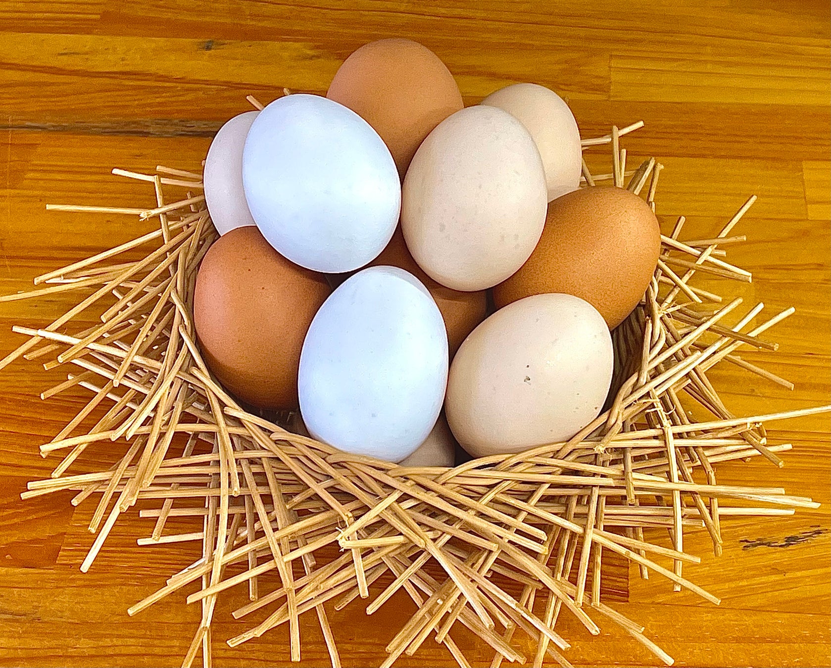 日本国内にいるニワトリの内、わずか数%しかいないと言われる「純国産鶏種」である「もみじ」のたまご。原料から買い付けて餌は自家配合しており、よもぎや海藻など天然の飼料をふんだんに与えています。独自の飼料や育て方で、生臭さがなくこくと甘みがある卵を追求しています。