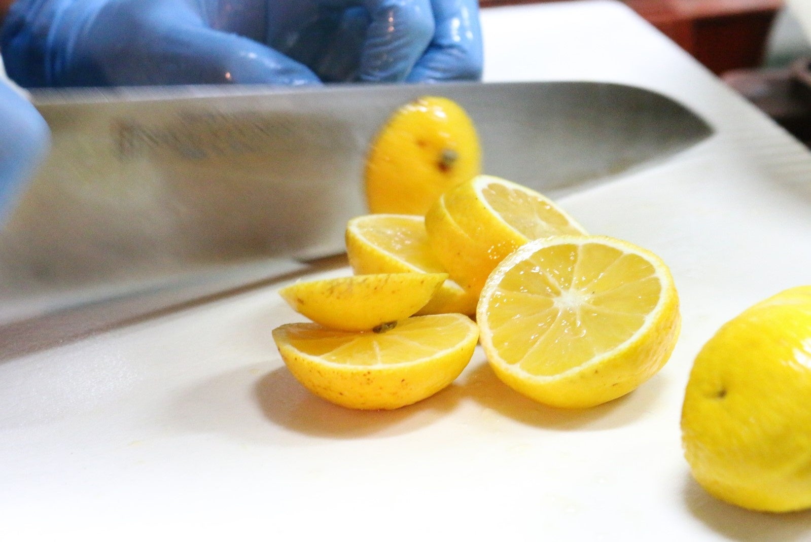 このビールには、湘南ゴールドの傷あり品やサイズ規格外品などを活用しています。果実は自分たちの手で切って、皮も果汁も捨てる部分なく果実を丸ごと使用。1回の醸造で約500kgの果実を使います。
