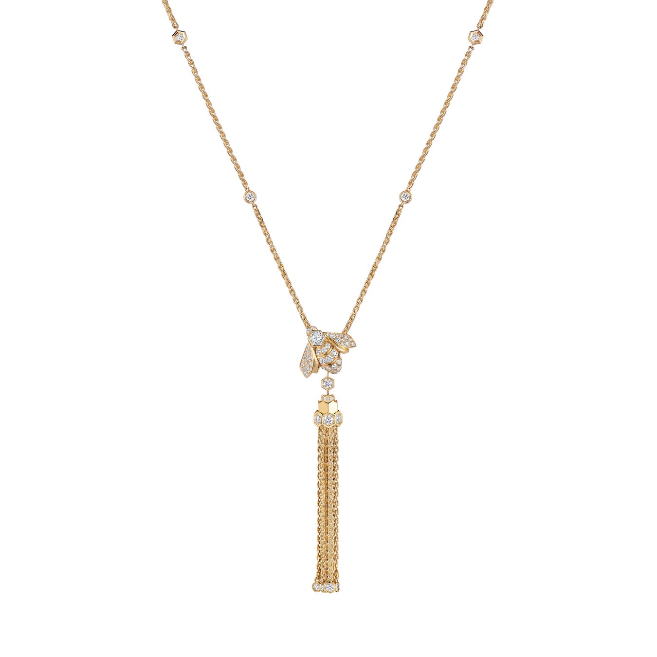 時を重ねて築き上げられ、存在感を表すミツバチの巣のように、ハニカムセルのジュエリーは次々とコレクションに加わり、メゾンを代表するコレクションへと成長しました。鏡面仕上げのゴールドとダイヤモンドを融合し、ハニカムセルの蜜壺に湛えられた蜂蜜のように光を集め輝きます。新たにコレクションに加わるのは、ミニサイズのミツバチが愛らしさを際立たせるリング、ブレスレット、ピアス、ペンダント。
