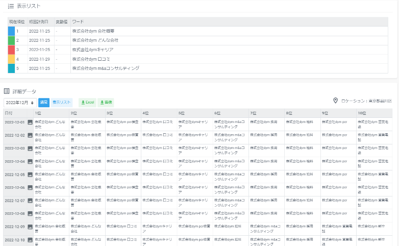 収集したデータは管理画面で一覧で確認できるほか、日ごとにキャプチャした画像データやExcelでの表にてダウンロードすることができます。