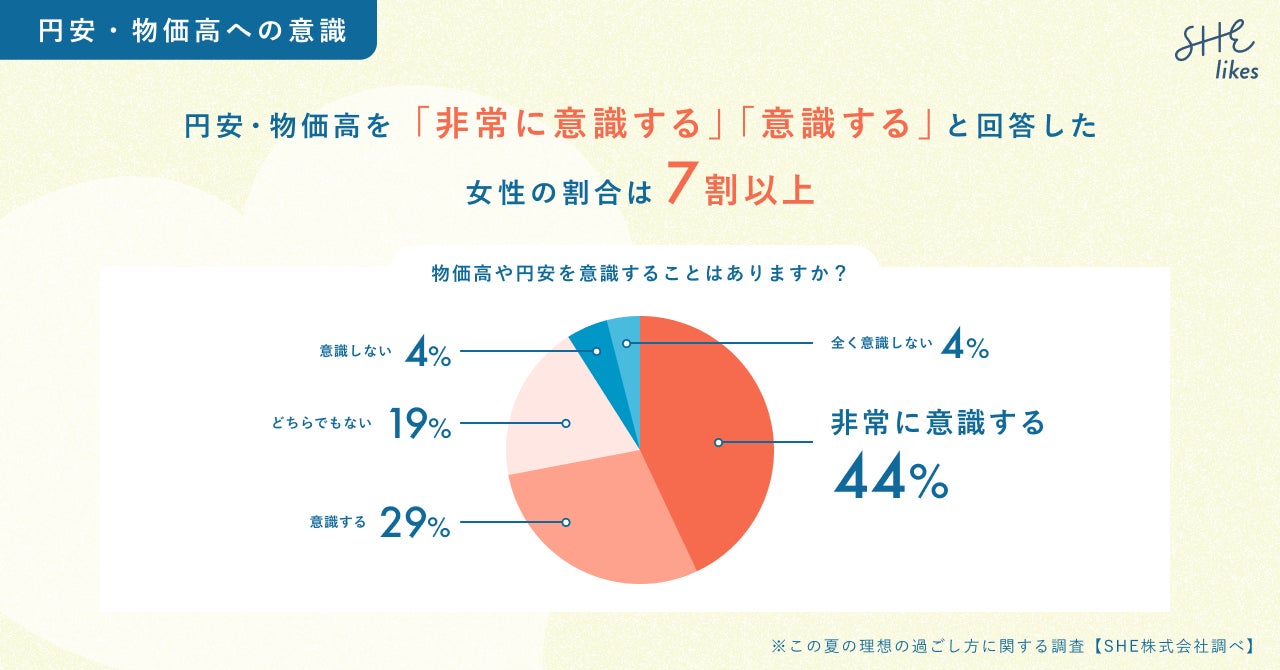 今年の夏、円安・物価高を「非常に意識する」「意識する」と回答した女性の割合は7割以上