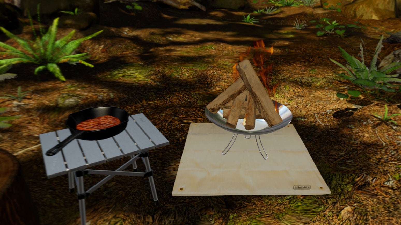 体験内容:コールマンのアウトドアグッズが設えられたリアルな店舗空間で、Apple Vision Proを装着します。目の前に広がるXR空間の焚き火を囲みながら、薪割りなどのインタラクティブな体験が楽しめます。リアルとバーチャルがシームレスに繋がる究極の没入感を提供します。