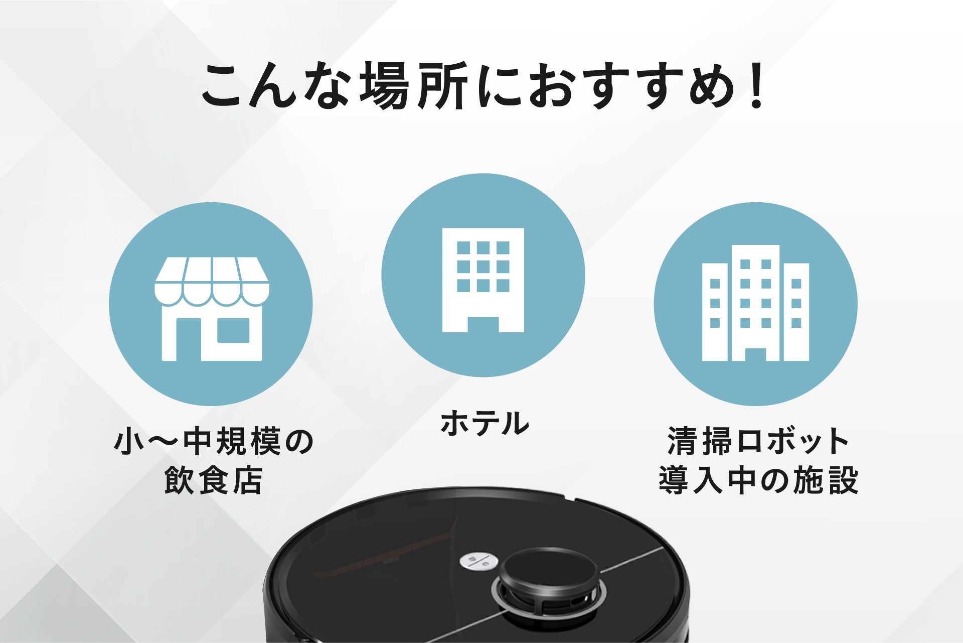このように小型で扱いやすい『RACLEBO slim』。業務用ロボットの中では金額も控えめなため、業務用清掃ロボットを初めて導入するという方に特におすすめです。