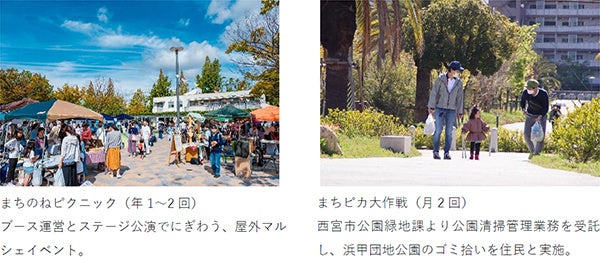 周辺の福祉施設ネットワーク「浜甲トライあんぐる」の運営サポート、UR都市機構や浜甲子園団地自治会との連携、各街区の管理組合と連携した防災イベントの開催。近隣の武庫川女子大学や、NPO等との連携も行っています。