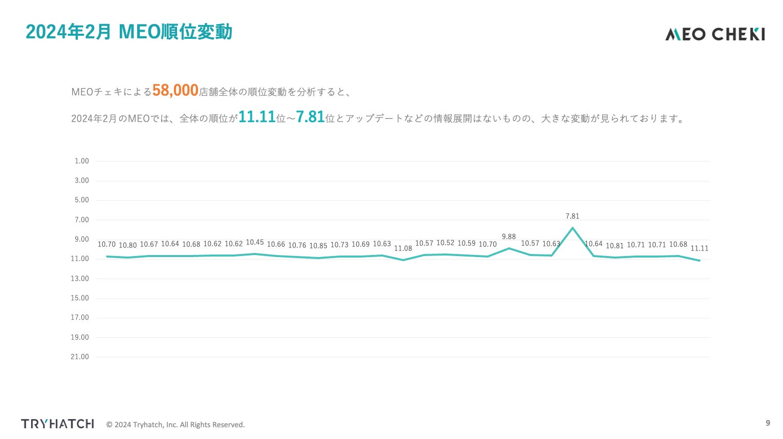 株式会社ベクトル(本社:東京都港区、代表取締役会長兼社長:西江 肇司、東証プライム:6058)の子会社である株式会社トライハッチ(東京都新宿区、代表取締役社長、武藤 尭行、以下「当社」)は、独自開発している店舗向けデジタルマーケティングツール「MEOチェキ」を活用して、MEOのアルゴリズム調査やトレンドをまとめた「MEOトレンドレポート」の2024年2月版を無料公開致しました。