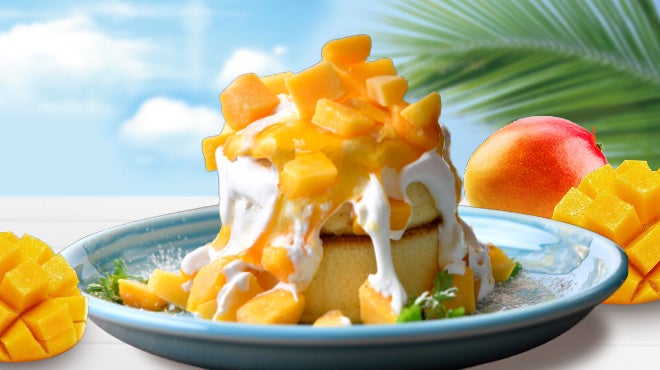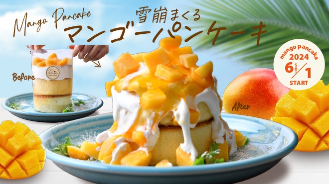 見て楽しい!食べておいしい!大好評をいただいた「雪崩れパンケーキ」に、夏の味覚”完熟マンゴー”をふんだんに使用した『雪崩まくるマンゴーパンケーキ』が新登場!