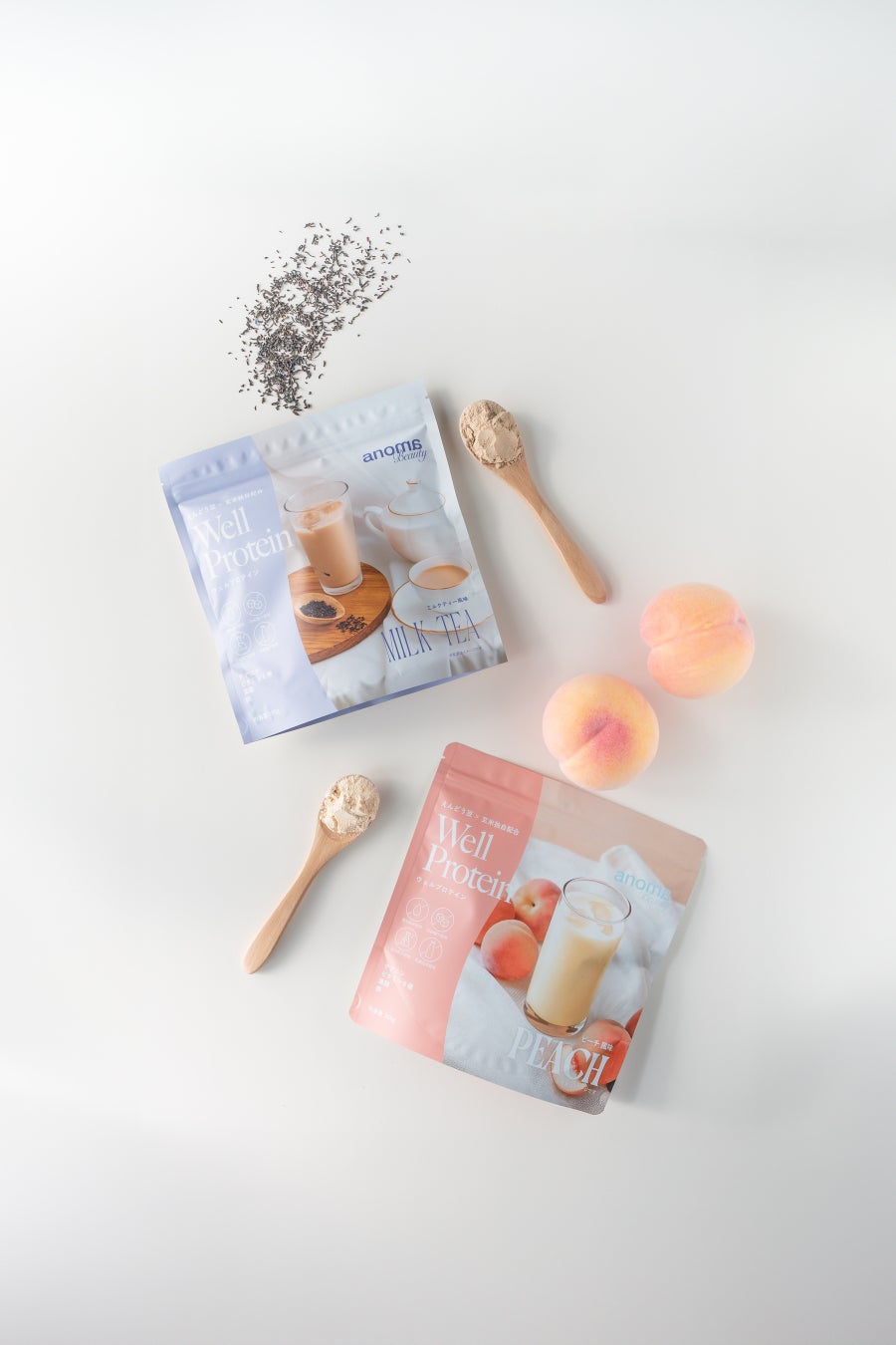 ブランド初の女性向けプロテイン。100%植物性のanomaプロテインから2024年11月に新発売した商品です。女性に不足しがちな葉酸やビタミン6種 ※1に加え、月経前症候群(PMS)に伴う不調をサポートし、心と体のバランスを整える※2といわれている「テアニン」を配合しています。