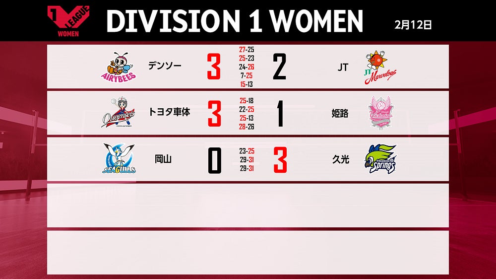 【バレー/Vリーグ】V1男子・WD名古屋は好調のJT広島を、V1女子・4位のデンソーは首位JTをフルセットで下し勝利!
