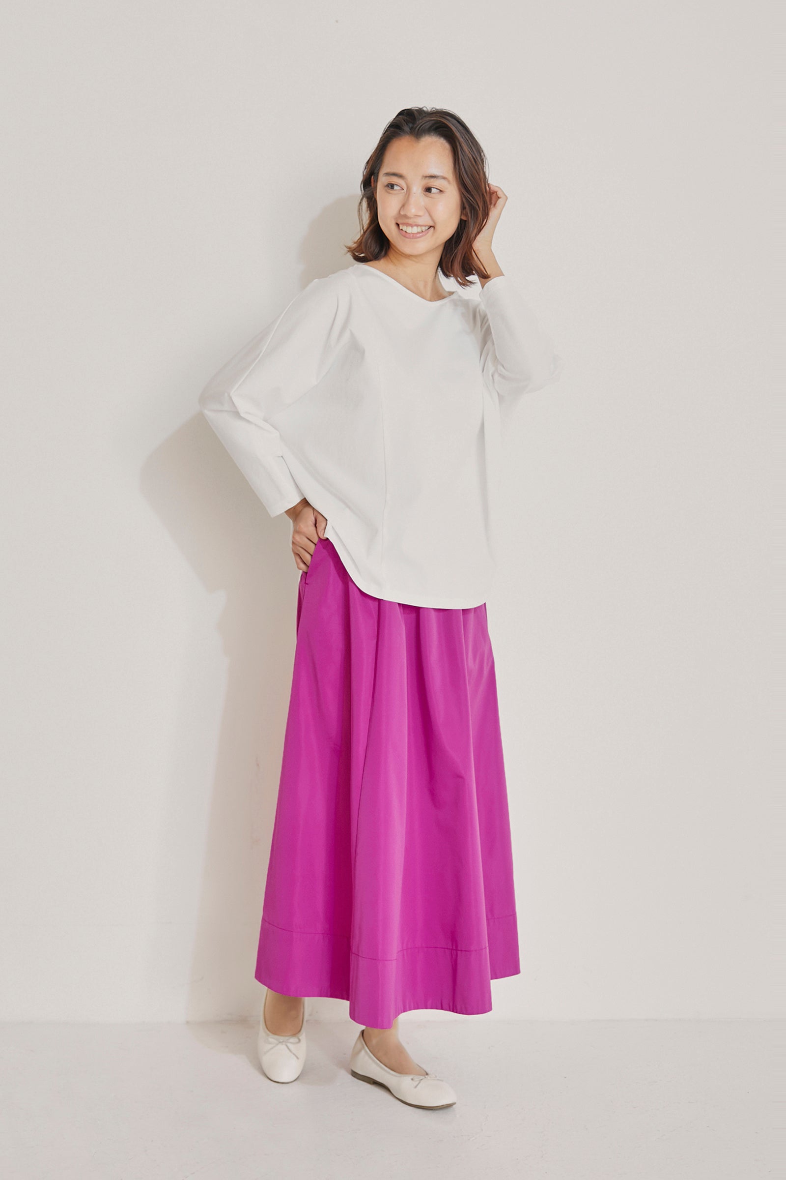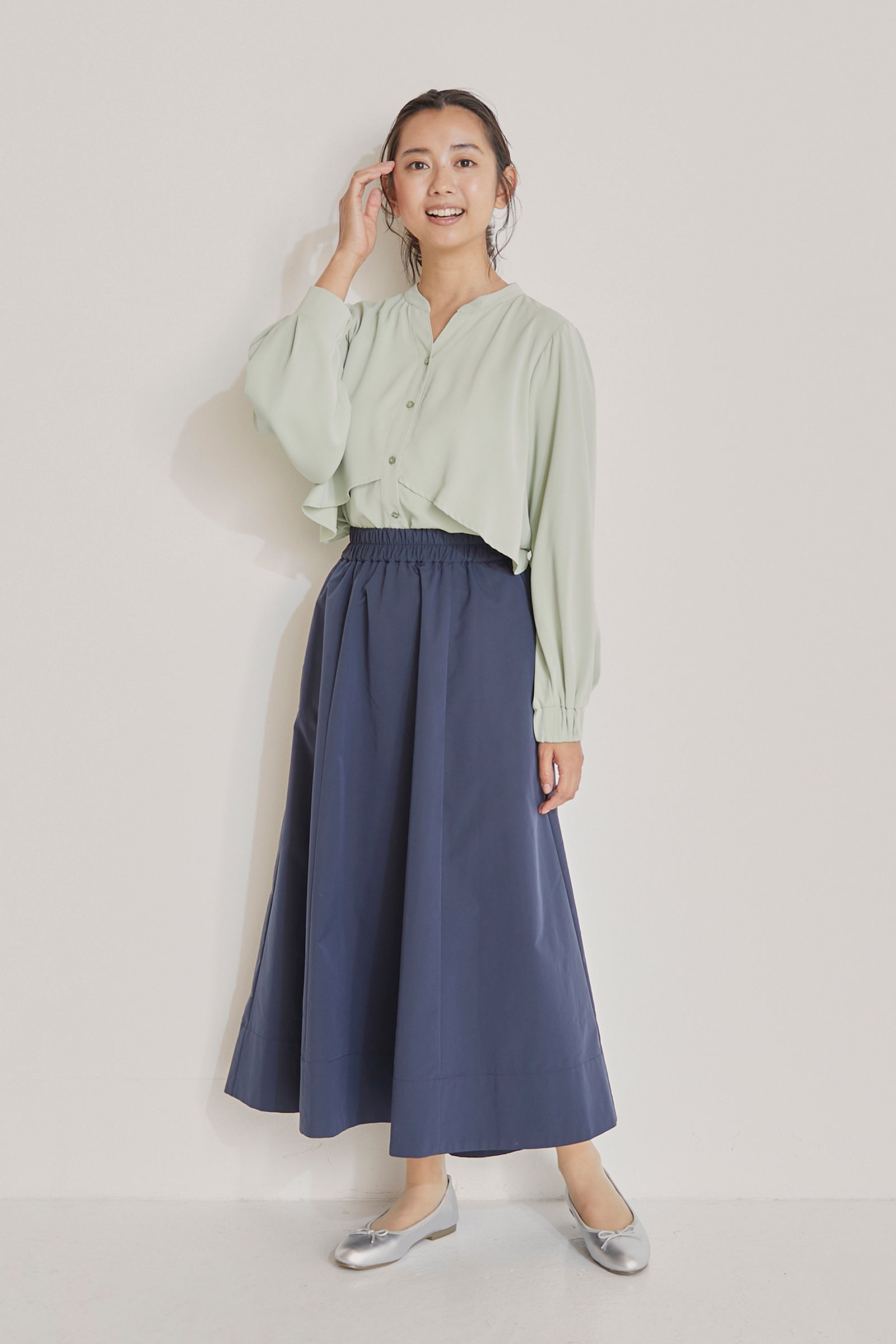 定番のフレアスカートも、防汚撥水機能をもつナノテックス加工でさらに使い勝手の良い1枚へアップデートしました。動きやすく、丈夫なタフタ素材で通年着用できます。