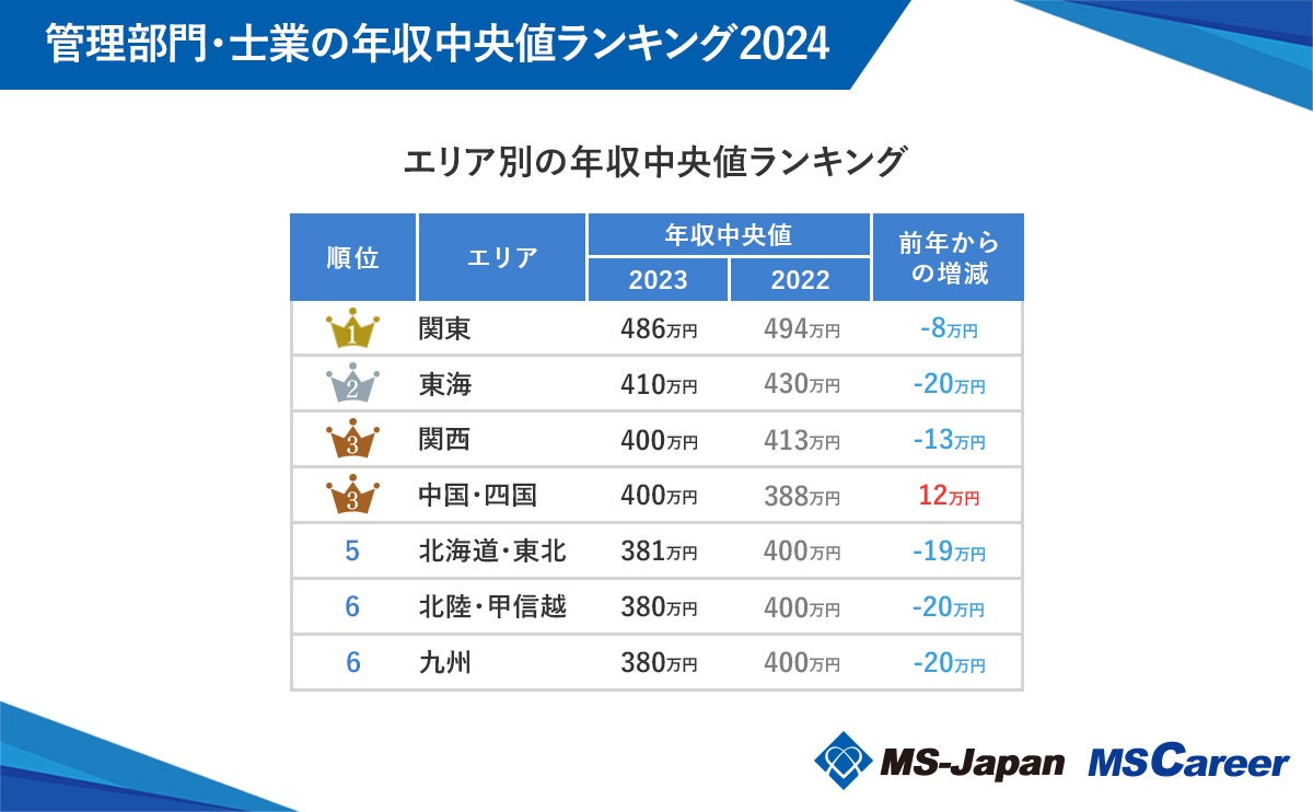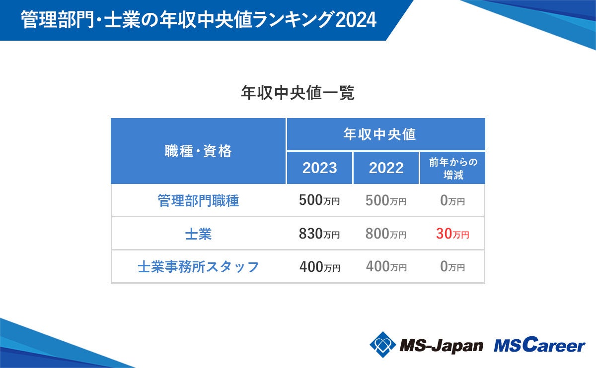 「管理部門・士業の年収中央値ランキング2024」サマリー