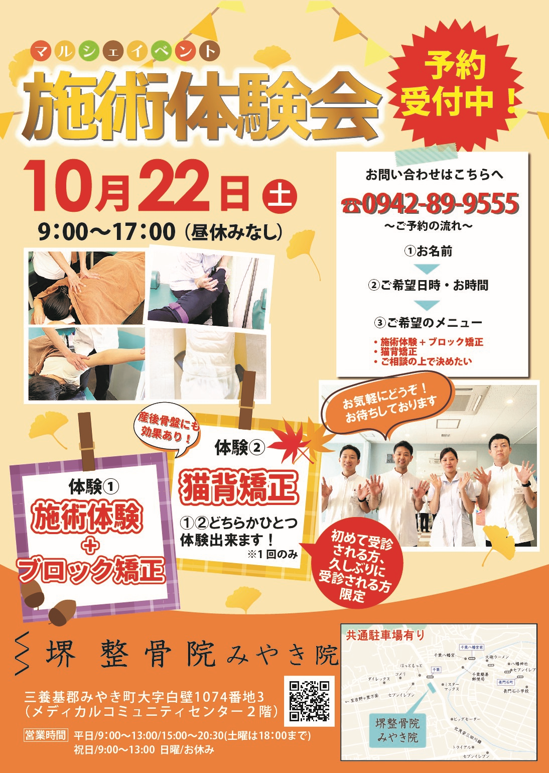 - 堺整骨院 みやき院が行う「施術体験会」について