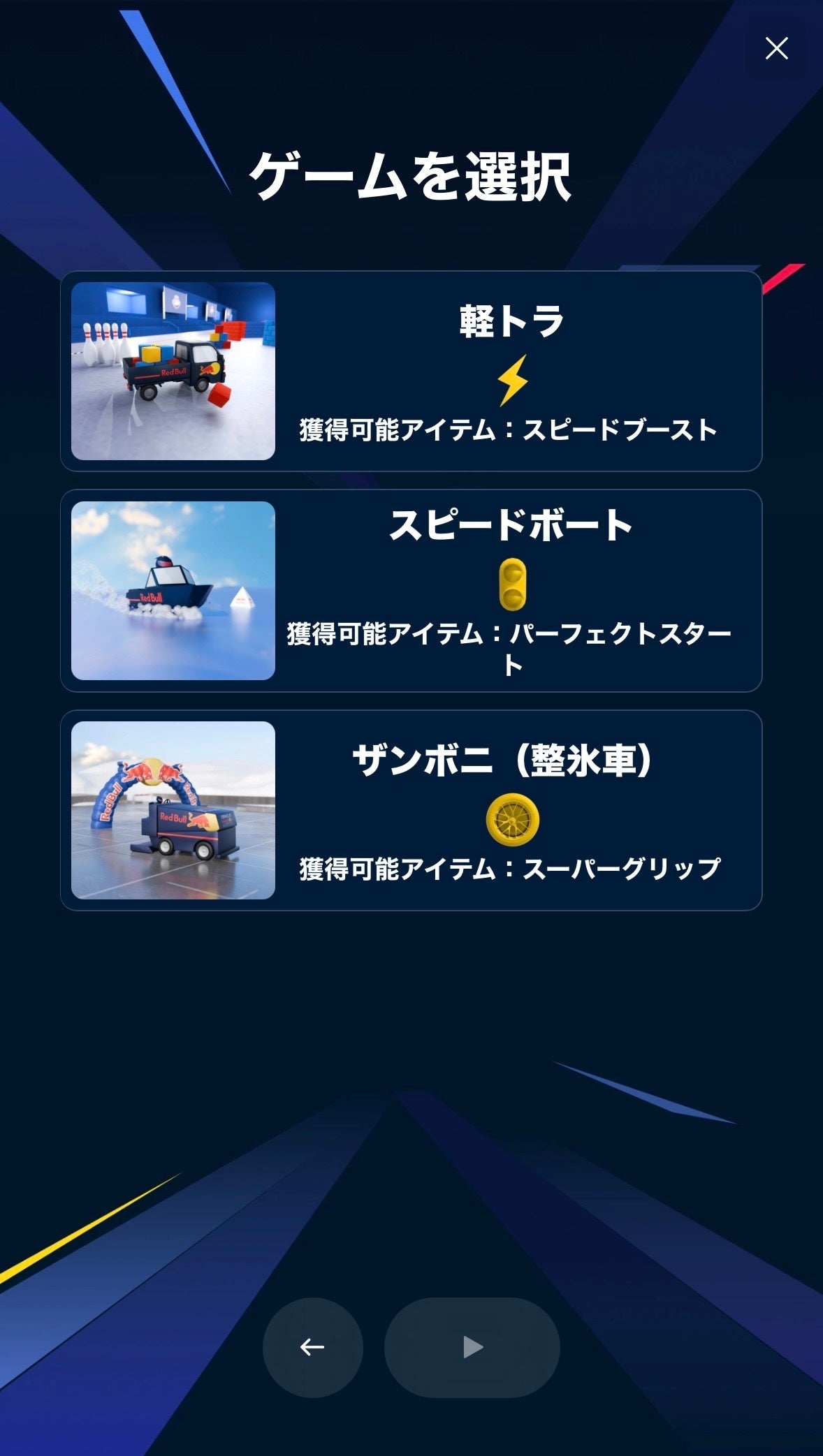 2. 好きな乗り物を選択して、ミニゲームに参加。「パワーアップアイテム」をゲット。