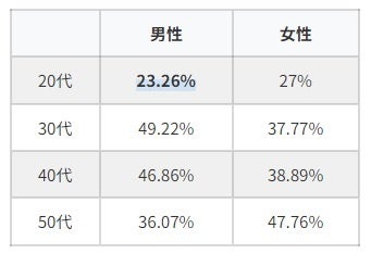 20代男子の中で毎日入浴(週7)する割合は23%。