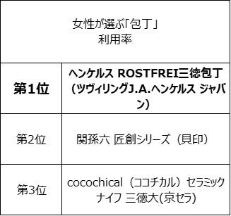 ◆女性が選ぶ「包丁」ランキング、利用率第1位は「ヘンケルス ROSTFREI三徳包丁ツヴィリングJ.A.ヘンケルス ジャパン)」