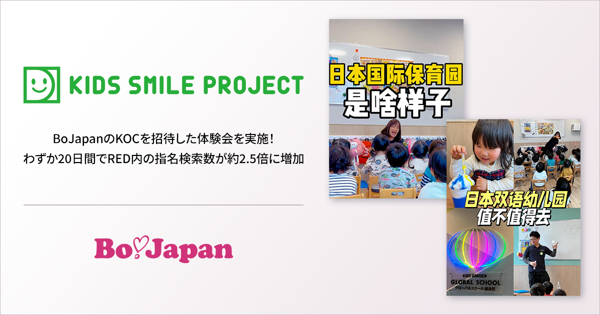 キッズスマイルプロジェクトがBoJapanのKOCを招待した体験会を実施!RED(小紅書)投稿開始後、わずか20日間でRED内での指名検索数が施策実施前の約2.5倍に増加