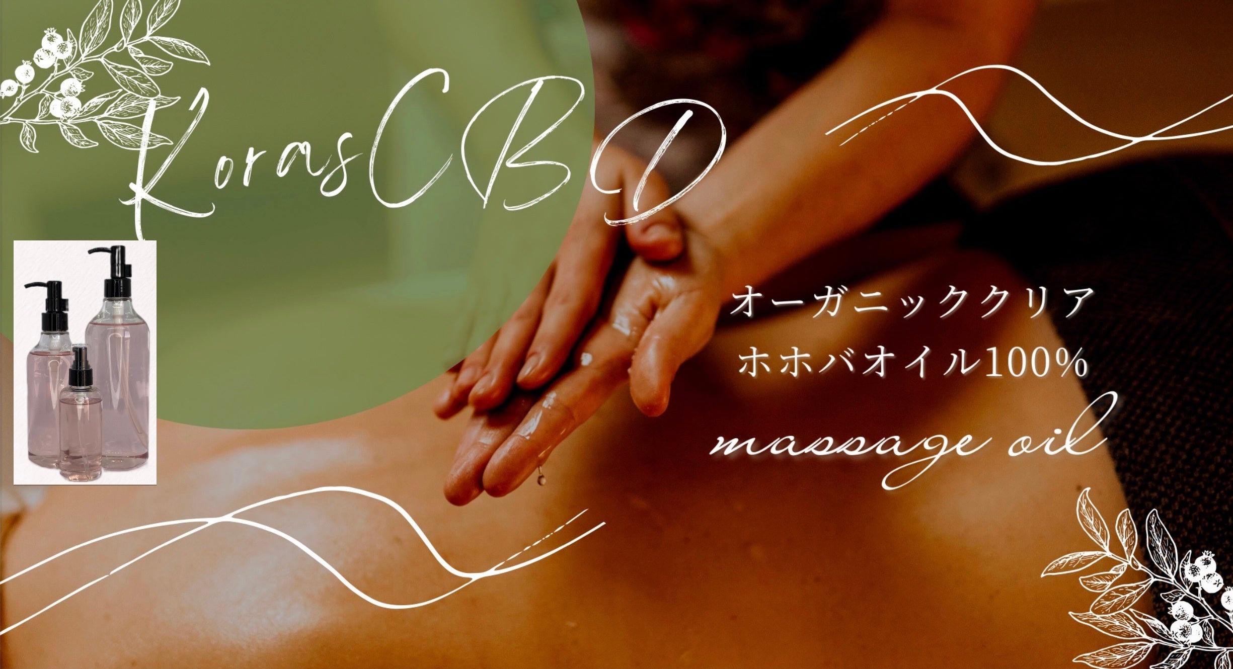 Koras CBD Massage Oilには、オーガニッククリアホホ バオイルが配合されております。ホホバオイルは、肌に浸透しやすい油脂で、肌のうるおい を保つ効果があります。さらに、ホホバオイルには、ビタミンEや必須脂肪酸が含まれています。オーガニックのクリアホホバオイルを使用することで、肌 に優しい成分を配合し、マッサージオイルとしての機能を更に高めます。