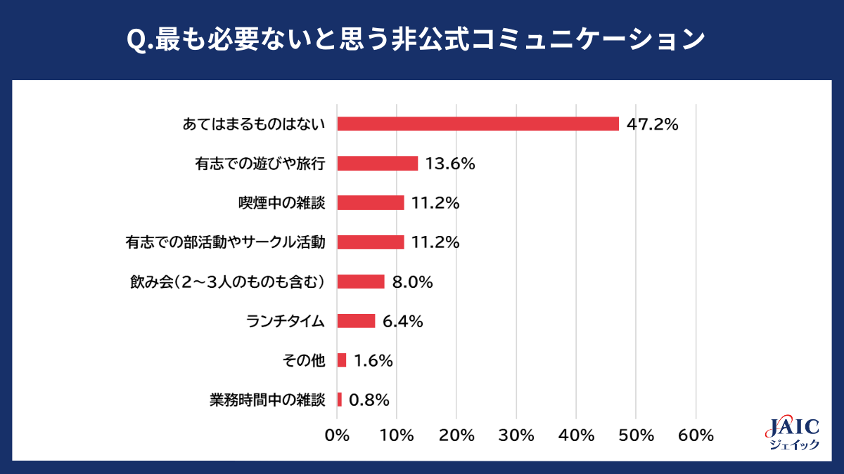 ■「最も必要ないと思う非公式コミュニケーション」:1位「あてはまるものはない」(47.2%)