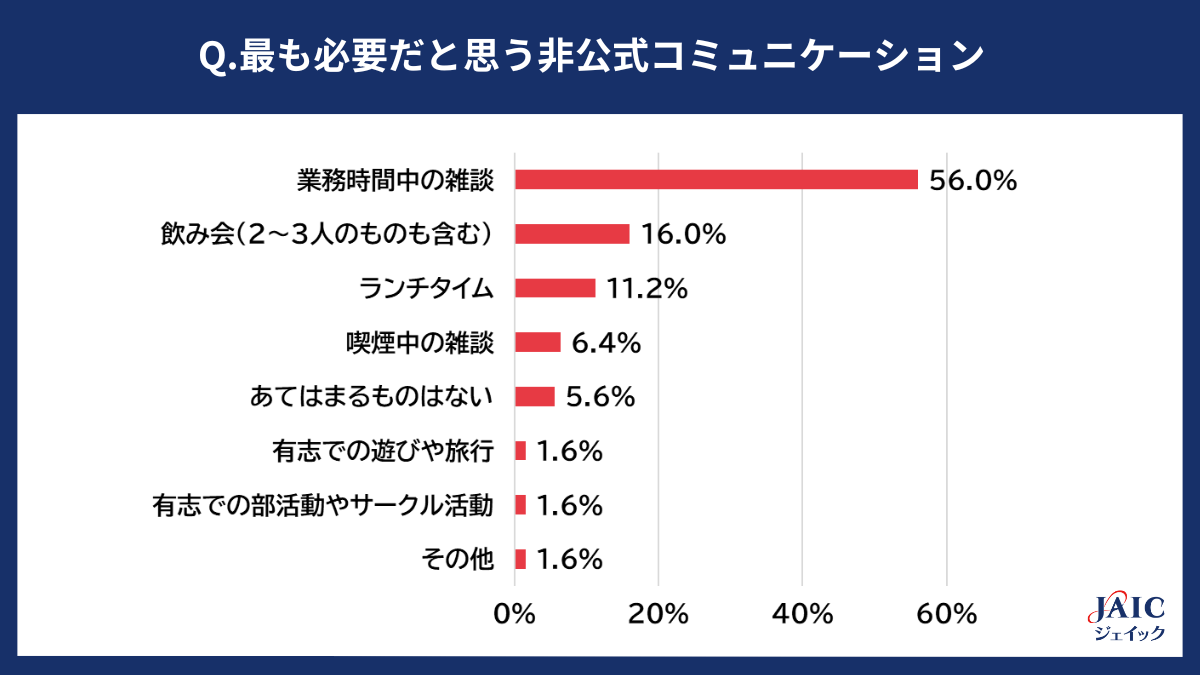 ■最も必要だと思う非公式コミュニケーション:1位「業務時間中の雑談」(56.0%)