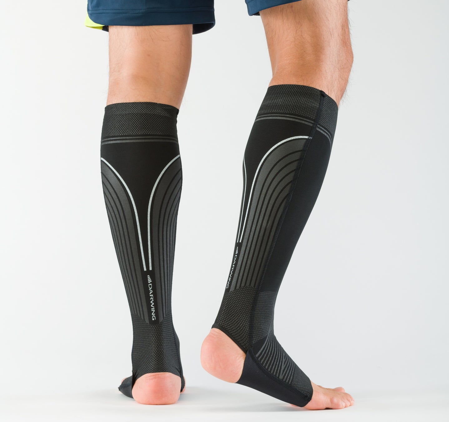 段階的着圧で長時間の立ち仕事の脚の負担を軽減します。また、テーピングラインでつま先を引き上げることで歩行をスムーズにします。