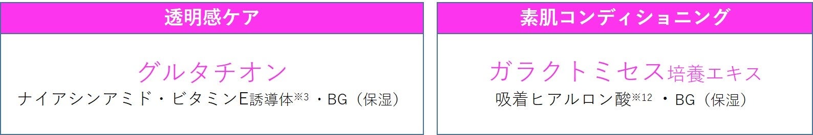 ①うるおいたっぷり爆弾級※9、透明感集中ケア